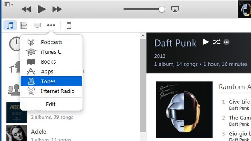 Double-click the converted M4R files to add it to the Tones section of your iTunes library (or add it using the 'Add file to library' menu option in iTunes). In iTunes 12 or later version, you can click on the three dots and choose Tones from the menu. Then you can drag and drop the m4r file into it.