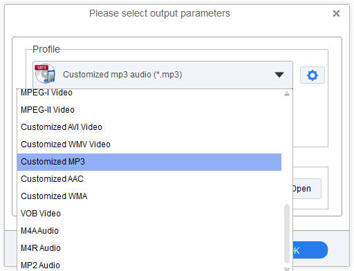 Your choice of file format really depends on the devices you have. Now, click the profile blue panel, you will see formats setting window. Press the last section Custom Settings > Customized MP3.